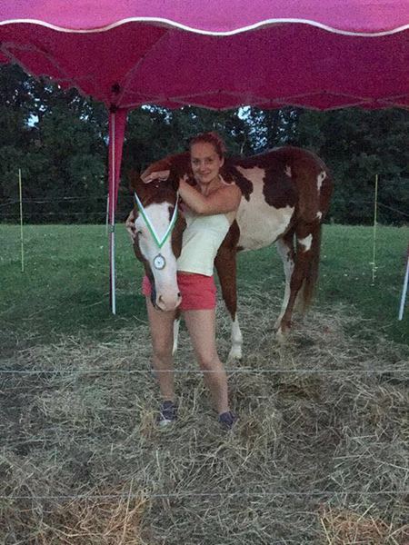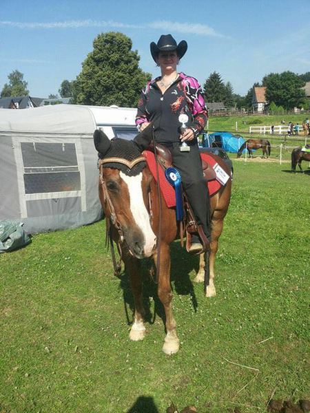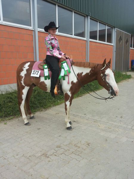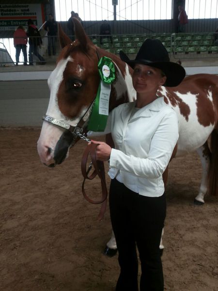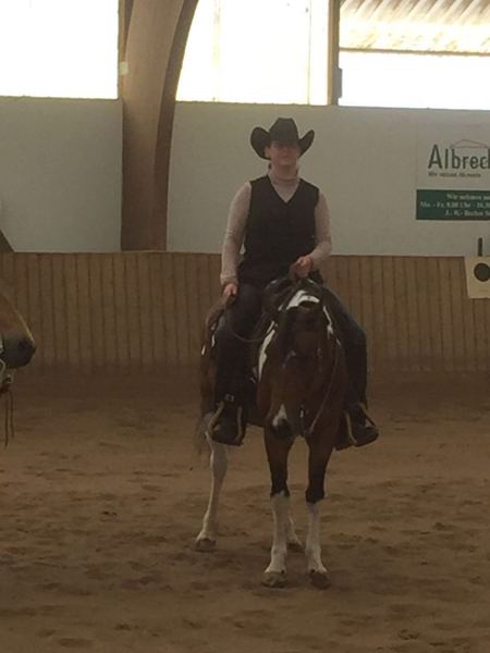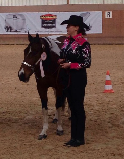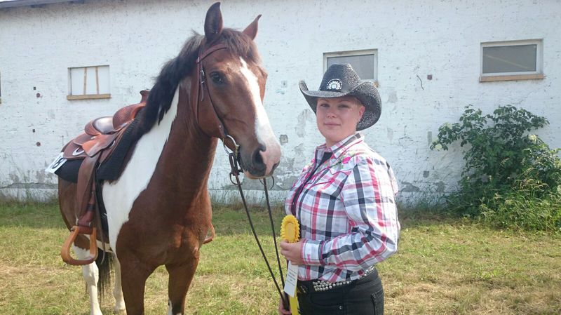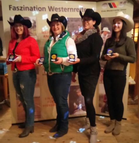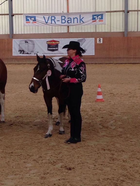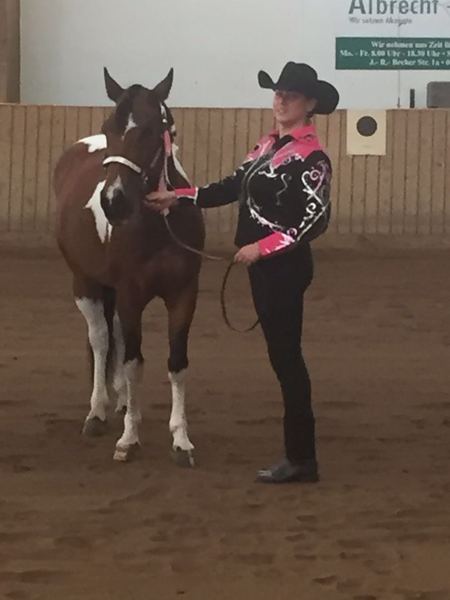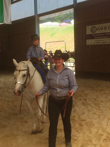 "Super schönen Abend auf der ElIsMaRo-Ranch gehabt und voller Stolz das zweite Future Cup Buckle an die ahnungslose und natürlich liebe Laura Keil und ihr Turnierpferd Arabella überreicht! Es war wohl das Jahr der weißen Pferde!!!