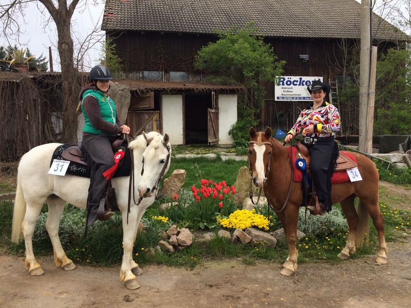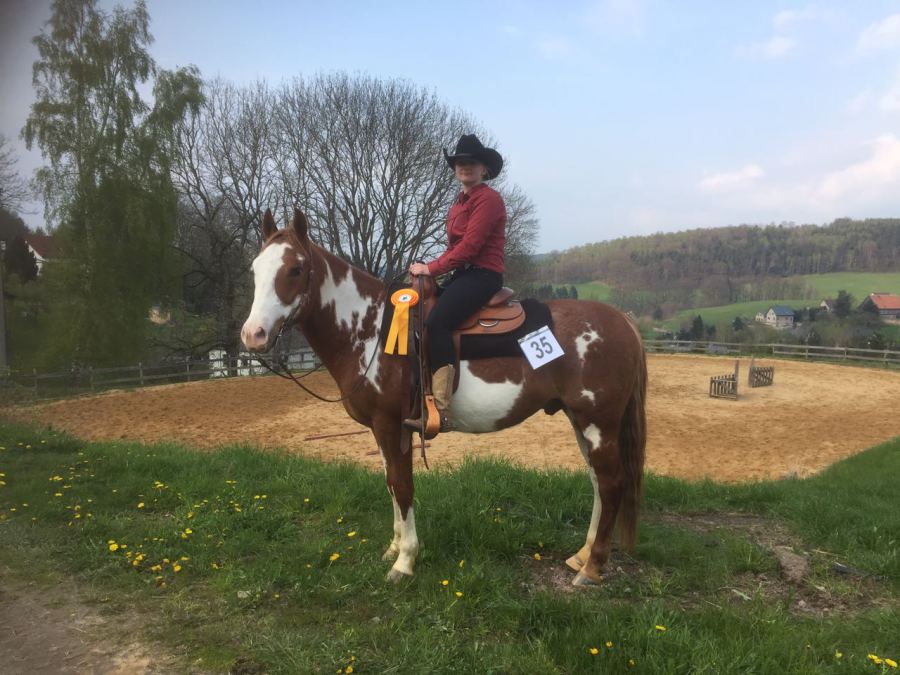Wir können auf ein sehr erfolgreiches Turnier am Wochenende zurück blicken. Silver lief die entspannteste Pleasure seines Lebens. Es hat zwar leider nicht für eine Schleife gereicht aber er wird immer besser. Manuel wird bester Reiter seiner Leistungsklasse in der Ranch Riding. Lauri wird Landesmeister im Jugend Trail und Mitteldeutscher Champion. Kaum zu glauben aber wahr. Wir haben nicht damit gerechnet. Maria und Star bekommen den Landesmeister in der Horsemanship. Und der kleine Charly hat all seine Kraft zusammen genommen, gewinnt den Junior Trail und wird somit Landesmeister. Natürlich nicht zu vergessen die super Leistung von Marie und Happy. Landesmeister SSH und Juniortrail und beste Reiterin Horse and Dog Sachsen Anhalt. Und unsere Ranch Mannschaft schaffte es bei den Mannschaftswettbewerben auf Platz 3!